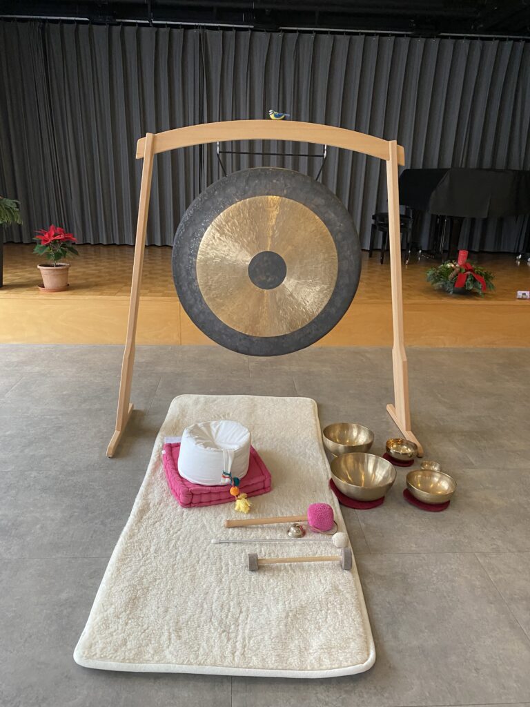 Ich komme ohne Rechnungsstellung, also gratis, in Ihre Einrichtung und biete eine 30 minütige Entspannungspause für Ihr Personal an. Mit meinem grossen Gong, ergänzt durch Klangschalen ermögliche ich ein entspannendes Klangbad für die Teilnehmer.